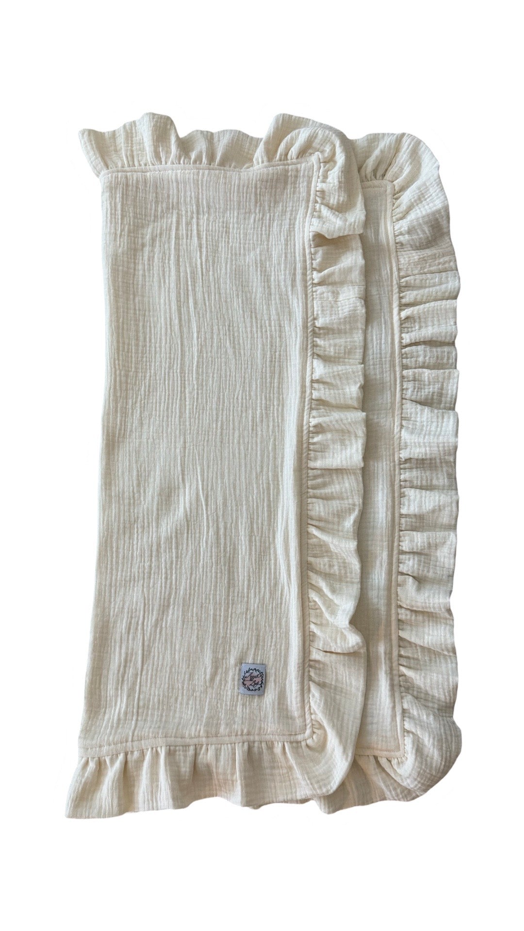 These airy blankets are double gauze fabric,a semi-sheer fabric that will softly cover while still allowing air flow.This blanket is great for everyday use! Do you have a sweaty sleeper, this blanket is made for that! This double gauze blanket is great for warmth and coverage will still offering air flow.